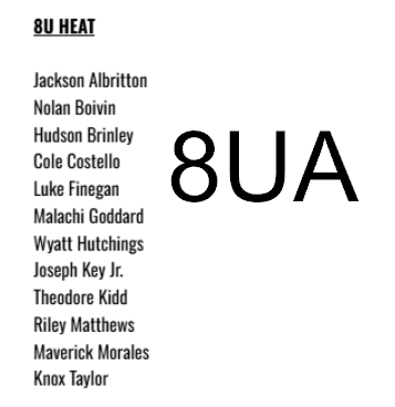 **IF YOU ARE AN 8U SUPPORTER, PLEASE BE AWARE THAT THERE ARE TWO OPTIONS. THEY ARE LABELED AS 8UA AND 8UB.**