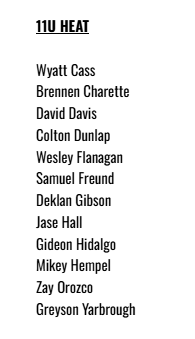 Show your team spirit with these official HEAT Baseball Team Shirts. Designed for players, fans, and families, these shirts come in sizes for all age divisions: 6U, 8U, 9U, 10U, 11U and 12U.